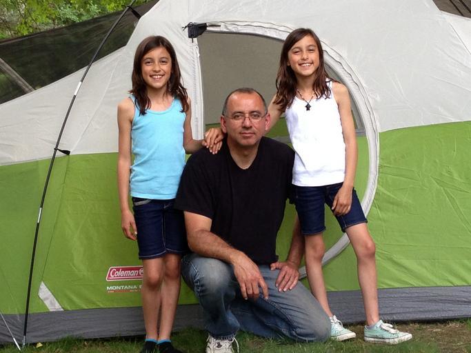 Keywords: happy family camping family people vacation daughter tent outdoors parent happiness adventure