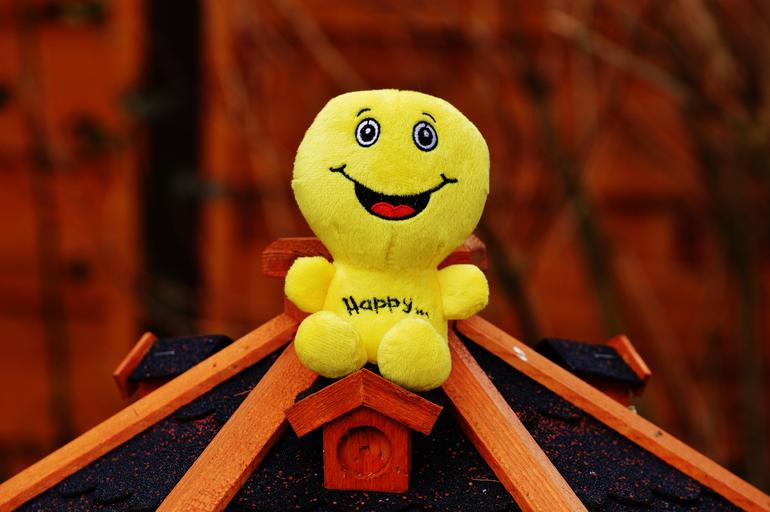 Keywords: happy smiley laugh funny emoticon emotion yellow green cheerful joy cute sweet good mood smile day start beginning positive courage life is beautiful happiness joy of life laughing face frohnatur pep talk keep smiling plush love valentine's day