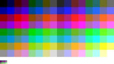 Keywords: Hardware palette of SAM Coupé.png Produced with the following ImageMagick command some manual resizing convert -size 16x8 xc \ -channel B -fx ' i 1 <<1 j 1 <<2 i 8 >>3 /7' \ -channel R -fx ' i 2 j 2 <<1 i 8 >>3 /7' \ -channel G -fx ' i 4 >>1 j 4 i 8 >>3 /7' -scale 1600 png8 SAM Coupé colourmap png en The full SAM Coupé hardware colour palette 2014-04-13 19 15 27 own StuartBrady cc-zero Uploaded with UploadWizard SAM Coupé Test patterns Screen colors Color palettes |