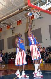 Keywords: harlem globetrotters basketball performance players dunk exhibition icons athletes sport entertainment net court hoop tall