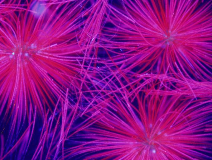 | Keywords: usgs science algal bacteria water native americans nativeamericans native freshwater health environment publication abstract texture Harmful Water Organisms — Here's a photo taken of gloeotrichia echinulata under an epifluorescent microscope which emits ultraviolet light. Using ultraviolet light, the filaments glow red from chlorophyll, while other pigments give various hues of purple, which may be a hint about the health of the cells. There may be organisms in lakes, reservoirs, rivers and streams, that produce natural toxins. When a harmful algal bloom is present with these toxins, there is a risk from drinking the water or consuming fish and shellfish. This organism is just one example. The Native American and Alaska Native communities that are dependent on subsistence fishing have an increased risk of exposure to these cyanotoxins. It is important to recognize the presence of an algal bloom in a waterbody and to distinguish a potentially toxic harmful algal bloom from a non-toxic bloom. Scientists at USGS created a guide which provides field images that show cyanobacteria blooms, some of which can be toxin producers, as well as other non-toxic algae blooms and floating plants that might be confused with algae. The guide also provides microscopic images of the common cyanobacteria that are known to produce toxins, as well as images of algae that form blooms but do not produce toxins. You can see the full report at on.doi.gov/HarmfulAlgalBlooms. Harmful Water Organisms — Here's a photo taken of gloeotrichia echinulata under an epifluorescent microscope which emits ultraviolet light. Using ultraviolet light, the filaments glow red from chlorophyll, while other pigments give various hues of purple, which may be a hint about the health of the cells. There may be organisms in lakes, reservoirs, rivers and streams, that produce natural toxins. When a harmful algal bloom is present with these toxins, there is a risk from drinking the water or consuming fish and shellfish. This organism is just one example. The Native American and Alaska Native communities that are dependent on subsistence fishing have an increased risk of exposure to these cyanotoxins. It is important to recognize the presence of an algal bloom in a waterbody and to distinguish a potentially toxic harmful algal bloom from a non-toxic bloom. Scientists at USGS created a guide which provides field images that show cyanobacteria blooms, some of which can be toxin producers, as well as other non-toxic algae blooms and floating plants that might be confused with algae. The guide also provides microscopic images of the common cyanobacteria that are known to produce toxins, as well as images of algae that form blooms but do not produce toxins. You can see the full report at on.doi.gov/HarmfulAlgalBlooms. |