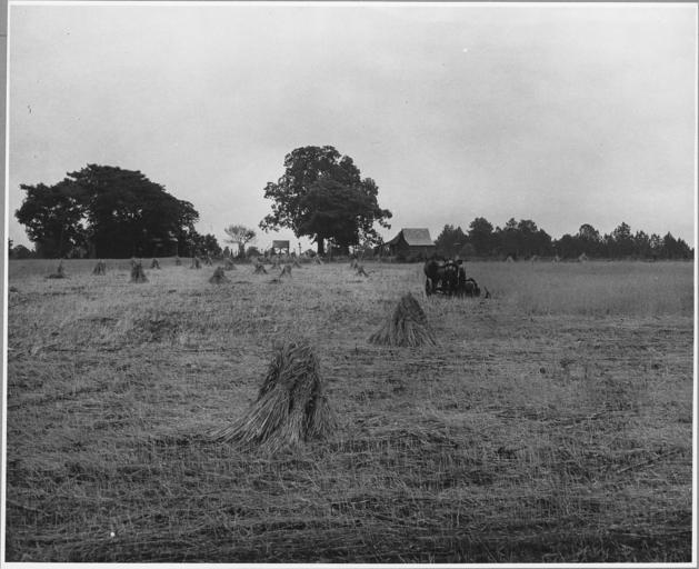 | Keywords: Harmony Community, Putnam County, Georgia.... Binders are not uncommon on large farms, but those who . . . - NARA - 521332.jpg Scope and content Full caption reads as follows Harmony Community Putnam County Georgia Binders are not uncommon on large farms but those who can handle all their small grains by hand continue to do so These African-American tenants have made a sort of mechanical cradle out of an old mowing machine with a piece of corrugated iron rigged behind the cutter bar to catch the fallen stalks One man walks along side with a stick and sweeps the standing grain back over the cutter while two others pick it out of the tin cradle and bind it General notes 521332 Local identifier 83-G-41019 Department of Agriculture Bureau of Agricultural Economics Division of Economic Information ca 1922 - ca 1953 NARA-Author Rusinow Irving Photographer 5307166 <br /> Still Picture Records Section Special Media Archives Services Division NWCS-S National Archives at College Park 8601 Adelphi Road College Park MD 20740-6001 1941 05 28 - 1941 06 01 Record group Record Group 83 Records of the Bureau of Agricultural Economics 1876 - 1959 Record group ARC 412 Photographic Prints Documenting Programs and Activities of the Bureau of Agricultural Economics and Predecessor Agencies compiled ca 1922 - ca 1947 documenting the period ca 1911 - ca 1947 Series ARC 521048 File unit File unit ARC Variant control numbers NAIL Control Number NWDNS-83-G-41019 Other versions <gallery> File Harmony_Community _Putnam_County _Georgia _Binders_are_not_uncommon_on_large_farms _but_those_who_ _ _ _-_NARA_-_521332 tif tif File Harmony_Community _Putnam_County _Georgia _Binders_are_not_uncommon_on_large_farms _but_those_who_ _ _ _-_NARA_-_521332 jpg jpg </gallery> NARA-cooperation PD-USGov Irving Rusinow Putnam County Georgia Black and white photographs of Georgia U S state |