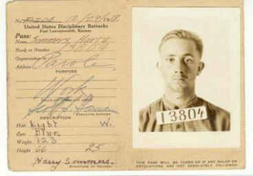 Keywords: harry sommers harrysommers mennonite conscientious objector conscientiousobjector world war i worldwari people indoor illustration Parole Work pass from the prison at Fort Leavenworth, Kansas, December 29, 1918. Sommers was drafted September 17, 1917, and was sent to Camp Zachary Taylor, Kentucky. He declared his position of conscientious objection to military service in various ways and was court martialed for disobeying an order on May 17, 1918. He was sent to Fort Leavenworth, where he served his sentence from May 24, 1918 to January 27, 1919. Sommers was born January 21, 1894 in Peach Orchard, Arkansas, the son of Joseph J. and Mary Magdalene Zook Sommers. He married Mary Della Horst, and died in 1984. Harry Sommers Papers. HM1-887SC. Mennonite Church USA Archives - Goshen. Goshen, Indiana. Parole Work pass from the prison at Fort Leavenworth, Kansas, December 29, 1918. Sommers was drafted September 17, 1917, and was sent to Camp Zachary Taylor, Kentucky. He declared his position of conscientious objection to military service in various ways and was court martialed for disobeying an order on May 17, 1918. He was sent to Fort Leavenworth, where he served his sentence from May 24, 1918 to January 27, 1919. Sommers was born January 21, 1894 in Peach Orchard, Arkansas, the son of Joseph J. and Mary Magdalene Zook Sommers. He married Mary Della Horst, and died in 1984. Harry Sommers Papers. HM1-887SC. Mennonite Church USA Archives - Goshen. Goshen, Indiana. |