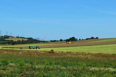 Keywords: harvest combine corn landscape tractor machine work agriculture the cultivation of food bread fief field wheat plant green