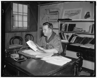 Keywords: Harvey A. Gordon, Director of Physical Arrangements for National Boy Scout Jamboree 22782v.jpg Title Huge responsibiltiy Washington D C Harvey A Gordon Director of Physical Arrangements for National Boy Scout Jamboree to be held in Washington beginning on June 30 faces a huge task He is responisble for the erection of tents to accommodate 30 000 Scouts and 3 000 Scout officers It will also be his duty to see that 5 miles of water line is laid to the tents; installation of 100 telephone instruments which will necessitate 10 miles of telephone line; and the ordering of 250 tons of food and supplies daily It has been estimated that 1 000 000 gallons of water will be used each day 5/28/37 Creator s Harris Ewing photographer 1937 May 28 Medium 1 negative glass 4 x 5 in or smaller accession number Reproduction Number LC-DIG-hec-22782 digital file from original negative Rights Advisory No known restrictions on publication Call Number LC-H22- D-1580 P P institution Library of Congress Prints and Photographs Division Washington D C 20540 USA http //hdl loc gov/loc pnp/pp print Title from unverified caption data received with the Harris Ewing Collection Gift; Harris Ewing Inc 1955 General information about the Harris Ewing Collection is available at http //hdl loc gov/loc pnp/pp hec Temp note Batch four LOC-image hec 22743 http //www loc gov/pictures/search/ q Boy 20Scout 20Jamboree Harris Eweing PD-Harris-Ewing 1937 National Scout Jamboree 1937 in Washington D C Uploaded with VicuñaUploader |