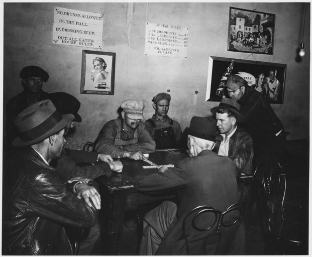 | Keywords: Haskell County, Kansas. Sublette's Pool Hall. Recreation is limited in this region, though now that . . . - NARA - 522154.jpg Scope and content Full caption reads as follows Haskell County Kansas Sublette's Pool Hall Recreation is limited in this region though now that most families have cars many of them drive to the larger towns outside the county to see movies In Sublette people meet either here or in the back part of one of the drugstores There is a domino game going in both almost every night The pool hall draws more people because it offers a choice of dominoes or pool; also most of the drug-store crowd are younger people General notes 522154 Local identifier 83-G-41965 Department of Agriculture Bureau of Agricultural Economics Division of Economic Information ca 1922 - ca 1953 NARA-Author Rusinow Irving Photographer 5307166 <br /> Still Picture Records Section Special Media Archives Services Division NWCS-S National Archives at College Park 8601 Adelphi Road College Park MD 20740-6001 04/1941 Record group Record Group 83 Records of the Bureau of Agricultural Economics 1876 - 1959 Record group ARC 412 Photographic Prints Documenting Programs and Activities of the Bureau of Agricultural Economics and Predecessor Agencies compiled ca 1922 - ca 1947 documenting the period ca 1911 - ca 1947 Series ARC 521048 File unit File unit ARC Variant control numbers NAIL Control Number NWDNS-83-G-41965 Other versions <gallery> File Haskell_County _Kansas _Sublette's_Pool_Hall _Recreation_is_limited_in_this_region _though_now_that_ _ _ _-_NARA_-_522154 tif tif File Haskell_County _Kansas _Sublette's_Pool_Hall _Recreation_is_limited_in_this_region _though_now_that_ _ _ _-_NARA_-_522154 jpg jpg </gallery> NARA-cooperation PD-USGov Irving Rusinow Haskell County Kansas |