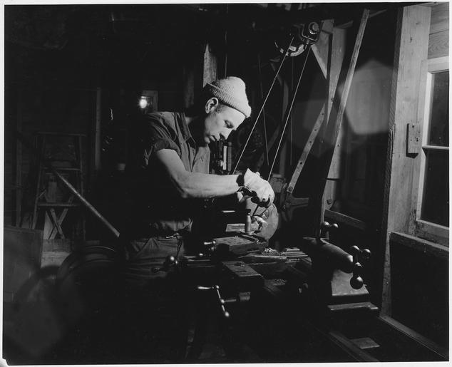 | Keywords: Haskell County, Kansas. Though the people here are not able to do much in the way of self-sufficient . . . - NARA - 522164.tif Scope and content Full caption reads as follows Haskell County Kansas Though the people here are not able to do much in the way of self-sufficient agriculture they try to make themselves as independent of outside skilled help as possible Nearly every farm has its shop and most farmers are able mechanics Since all their work is done with machines they must understand them as any worker must understand the tools of his trade This image shows a young farmer working at a lathe Expensive tools like this one are not common of course Forges however are found on virtually every farm There are always mechanical jobs that require special equipment so that this machine shop in Sublette has plenty of work to do In harvest time it has more than it can handle General notes 522164 Local identifier 83-G-41975 Department of Agriculture Bureau of Agricultural Economics Division of Economic Information ca 1922 - ca 1953 NARA-Author Rusinow Irving Photographer 5307166 <br /> Still Picture Records Section Special Media Archives Services Division NWCS-S National Archives at College Park 8601 Adelphi Road College Park MD 20740-6001 04/1941 Record group Record Group 83 Records of the Bureau of Agricultural Economics 1876 - 1959 Record group ARC 412 Photographic Prints Documenting Programs and Activities of the Bureau of Agricultural Economics and Predecessor Agencies compiled ca 1922 - ca 1947 documenting the period ca 1911 - ca 1947 Series ARC 521048 File unit File unit ARC Variant control numbers NAIL Control Number NWDNS-83-G-41975 yes Other versions <gallery> File Haskell_County _Kansas _Though_the_people_here_are_not_able_to_do_much_in_the_way_of_self-sufficient_ _ _ _-_NARA_-_522164 tif tif File Haskell_County _Kansas _Though_the_people_here_are_not_able_to_do_much_in_the_way_of_self-sufficient_ _ _ _-_NARA_-_522164 jpg jpg </gallery> NARA-cooperation PD-USGov Irving Rusinow Haskell County Kansas NARA TIF images with categorized JPGs |