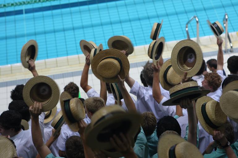 Keywords: hats straw hats audience school competition teenager young boys students group