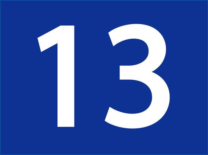 Keywords: Hauptstrasse 13 number.svg Schweizer Hauptstrassennummer Automatisch erzeugt durch Felix Portier Swiss Cantonal Road Hauptstrassen number signet Created automatically by Felix Portier 2008-09-13 own assumed Felix Portier~commonswiki Hauptstrassen numbers 13 13 number Blue and white signs Blue rectangles Rectangles with numbers |