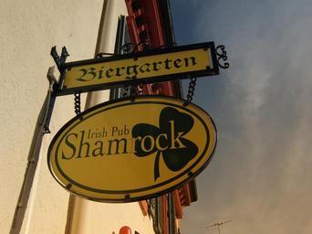 Keywords: hauswand shield advertisement billboard company sign pub irish beer garden economy
