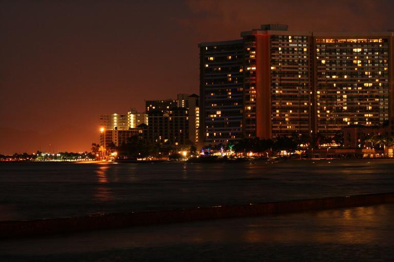 Keywords: havaii night mar ocean beach hotel sunset agua building