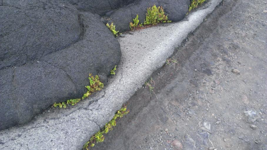 Keywords: hawaii island of hawaii lava volcano lava flow cold petrified road closed plant in lava