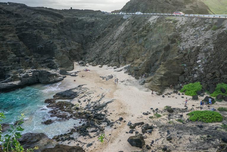 Keywords: hawaii oahu north shore hawaii beach waves rocks cliff nature sea shore water blue sky tropical landscape travel island outdoors vacation summer