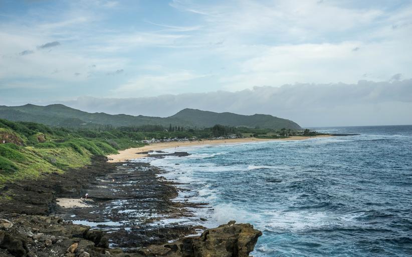 Keywords: hawaii oahu north shore hawaii beach waves rocks cliff nature sea shore water blue sky tropical landscape travel island outdoors vacation summer