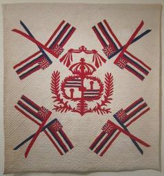 Keywords: Hawaiian quilt, 'Ku'u Hae Aloha' (My Beloved Flag), 1938.JPG en Hawaiian quilt Ku ™u Hae Aloha My Beloved Flag unidentified maker 1938 cotton plain weave appliquéd using a variation of the fern stitch quilted with running stitches Honolulu Museum of Art own Hiart photo 2012 Flags in art Hawaiian quilts Hawaiian textiles in the Honolulu Museum of Art Flags of Hawaii Close-ups of patchwork / quilts Flags in museums Cc-zero |
