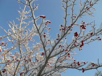 Keywords: hawthorne tree red berries snow hawthorn tree branch berry red winter storm
