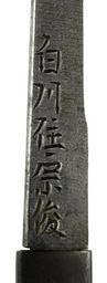 Keywords: Hayashi Masamitsu - Kozuka with Herons and Reeds - Walters 5111833 - Mark B.jpg At the right of the composition two herons are shown standing beneath reeds Incised lines on the left indicate water This is part of a mounted set 1864 late Edo silver shakudo gold cm 22 2 accession number 51 1183 3 5102 William T / Henry Walters Collection Baltimore date and mode of acquisition unknown Walters Art Museum Henry Walters Acquired by William T or Henry Walters Date Genji gentoshi kinoe ne chûka; Translation first year of Genji 1864 year of the rat 5th month; Signature Ichiryûsai Masamitsu sei; Translation Made by Ichiryûsai Masamitsu place of origin Aizu Japan Walters Art Museum license Kozuka in the Walters Art Museum Hayashi Masamitsu Media contributed by the Walters Art Museum needs category review |