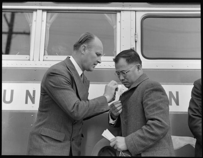 Keywords: Hayward, California. The Reverend John Carlos Derfelt, Baptist Minister, ties identification tag in . . . - NARA - 537498.jpg Scope and content The full caption for this photograph reads Hayward California The Reverend John Carlos Derfelt Baptist Minister ties identification tag in coat lapel of the Reverend Sui Hiro of the San Lorenzo Holiness Church as he prepares to board evacuation bus The Reverend Hiro is a graduate of the University of Tokyo Evacuees of Japanese ancestry will be housed in War Relocation Authority centers for the duration General notes 537498 Local identifier 210-G-C146 Department of the Interior War Relocation Authority 02/16/1944 - 06/30/1946 NARA-Author Lange Dorothea 1895-1965 Photographer 1372774 <br /> Still Picture Records Section Special Media Archives Services Division NWCS-S National Archives at College Park 8601 Adelphi Road College Park MD 20740-6001 1942-05-08 Record group Record Group 210 Records of the War Relocation Authority 1941 - 1989 Record group ARC 537 Central Photographic File of the War Relocation Authority compiled 1942 - 1945 Series ARC 536000 File unit File unit ARC Variant control numbers NAIL Control Number NWDNS-210-G-C146 Other versions <gallery> File Hayward _California _The_Reverend_John_Carlos_Derfelt _Baptist_Minister _ties_identification_tag_in_ _ _ _-_NARA_-_537498 tif tif File Hayward _California _The_Reverend_John_Carlos_Derfelt _Baptist_Minister _ties_identification_tag_in_ _ _ _-_NARA_-_537498 jpg jpg </gallery> NARA-cooperation PD-USGov Japanese American internment processing in Hayward Dorothea Lange Different races of people together Holiness churches Baptists from the United States Alumni of the University of Tokyo 20th-century men of the United States People of the United States in 1942 |