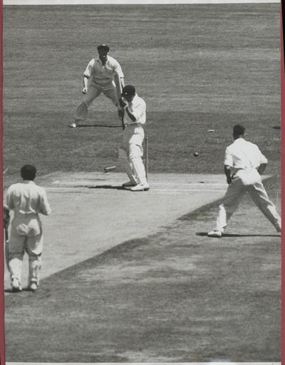 Keywords: Hazare bowled Miller for 16 (2nd test, 1947, Sydney, Australia against India).tif en Hazare bowled Miller for 16 2nd test 1947 Sydney Australia against India 1947-12 http //search slv vic gov au/primo_library/libweb/action/dlDisplay do vid MAIN docId SLV_VOYAGER1790297 fn permalink Herald and Weekly Times other versions Custom license marker 2016 03 06 PD-Australia India national cricket team in Australia 1947 “48 Vijay Hazare Keith Miller |