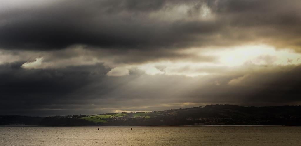 Keywords: haze landscape clouds sky scenic mist light panorama sea bay lake water mountains hills fields sunbeams