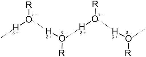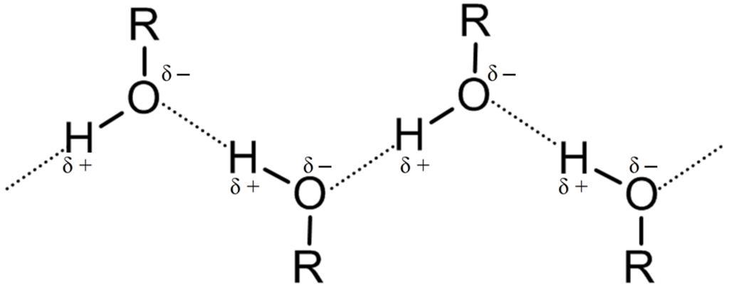 Keywords: Hbondalcohol.png H-bond in alcohols own Secalinum 2009-08-26 Hydrogen bonding Alcohols
