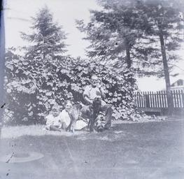 Keywords: children men dogs 1890s gardens outdoor snow monochrome An older man with two children and a dog, sitting in a garden. One of a set of glass negatives associated with Herbert 'Burt' Rathbun (1861-1897). An older man with two children and a dog, sitting in a garden. One of a set of glass negatives associated with Herbert 'Burt' Rathbun (1861-1897). |
