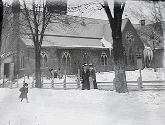 Keywords: churches 1890s winter children women outdoor snow building architecture blackandwhite black and white Two women watching a child in the snow outside a church building. One of a set of glass negatives associated with Herbert 'Burt' Rathbun (1861-1897). Two women watching a child in the snow outside a church building. One of a set of glass negatives associated with Herbert 'Burt' Rathbun (1861-1897). |