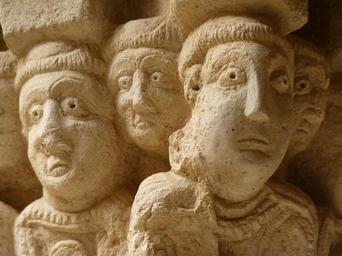 Keywords: head heads pillar monastery ruin old castle sant pere de rodes spain