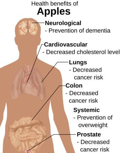 Keywords: Health benefits of apples.svg en Potential health benefits of apple consumption See Wikipedia Apple Health_benefits To discuss image please see Template talk Human body diagrams References For decreased risk of colon prostate and lung cancer cite web http //cancer stanford edu/information/nutritionAndCancer/reduceRisk/ Nutrition to Reduce Cancer Risk The Stanford Cancer Center SCC 2008-08-18 For weight loss and cholesterol control cite web http //www bestapples com/healthy/ Apples Keep Your Family Healthy dmy 22 January 2008 Washington State Apple Advertising Commission cite book Improve your health with Apple Guava Mango Diamond Pocket Books P Ltd 22 8128809245 Rajeev Sharma 2005 For prevention of dementia cite journal Chan A Graves V Shea TB Apple juice concentrate maintains acetylcholine levels following dietary compromise Journal of Alzheimer's Disease 9 3 287 “291 2006 16914839 All used images are in public domain Mikael Häggström 2009-04-20 Human body diagrams Apples SVG diagrams of the adult male human body by Mikael Häggström |