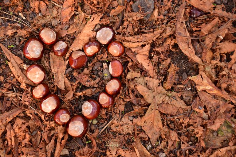 Keywords: heart chestnut chestnut heart autumn brown fall foliage leaves forest nature heart shaped autumn ground forest floor beautiful greeting card greetings romance feelings