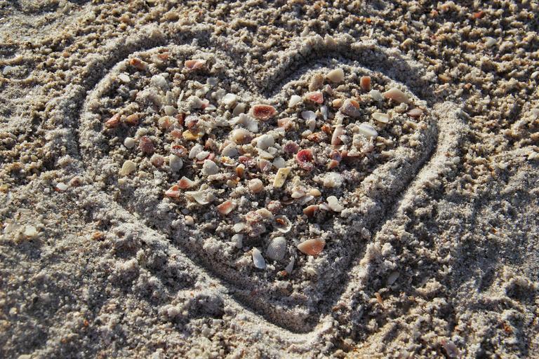 Keywords: heart in sand i love you sandherz sand beach mussels sand beach florida shell sand nature holiday mussel shells close still life tracks in the sand