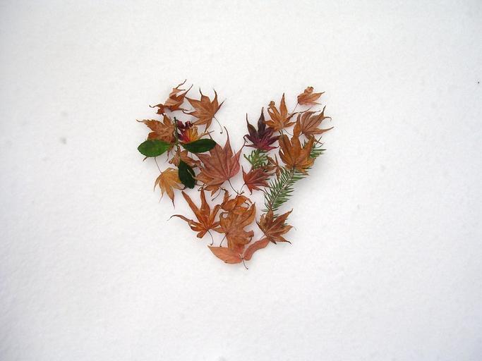 Keywords: Heart of leaves in snow.JPG en Leaves and twigs gathered together in the shape of a heart lying in the winter snow own Clementina 2010-12-28 Heart of snow