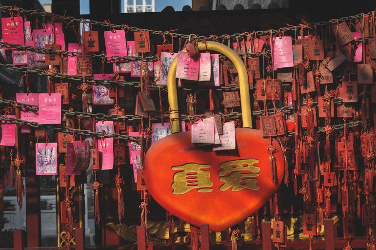 Keywords: heart lock padlock symbol love romantic vintage red metal chains tags asian asia lockets wishes tianjin china