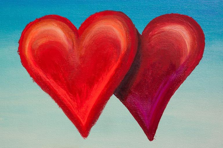 Keywords: heart love luck painted wedding romance gift red orange pink purple colorful turquoise light green complementary romantic valentine decoration warm fund structure background