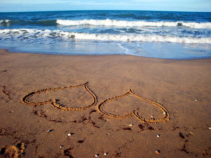Keywords: heart love romance relationship marriage wedding symbol luck feelings romantic affection beach beautiful lovers partner resurrection soul holidays island emotion pair connectedness sea wave surf live sensual together mourning memory