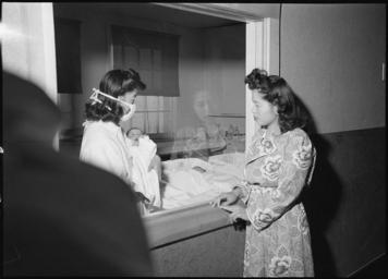 Keywords: Heart Mountain Relocation Center, Heart Mountain, Wyoming. Mrs. Mari Yoshida looks at her baby thro . . . - NARA - 539443.tif Scope and content The full caption for this photograph reads Heart Mountain Relocation Center Heart Mountain Wyoming Mrs Mari Yoshida looks at her baby through the plate glass window of the nursery as nurses aide Nobuko Hirashima returns it to its crib after feeding General notes 539443 Local identifier 210-G-G190 Department of the Interior War Relocation Authority 02/16/1944 - 06/30/1946 NARA-Author Iwasaki Hikaru 1923- Photographer 8464103 <br /> Still Picture Records Section Special Media Archives Services Division NWCS-S National Archives at College Park 8601 Adelphi Road College Park MD 20740-6001 1943-11-18 Record group Record Group 210 Records of the War Relocation Authority 1941 - 1989 Record group ARC 537 Central Photographic File of the War Relocation Authority compiled 1942 - 1945 Series ARC 536000 File unit File unit ARC Variant control numbers NAIL Control Number NWDNS-210-G-G190 yes Other versions <gallery> File Heart_Mountain_Relocation_Center _Heart_Mountain _Wyoming _Mrs _Mari_Yoshida_looks_at_her_baby_thro_ _ _ _-_NARA_-_539443 tif tif File Heart_Mountain_Relocation_Center _Heart_Mountain _Wyoming _Mrs _Mari_Yoshida_looks_at_her_baby_thro_ _ _ _-_NARA_-_539443 jpg jpg </gallery> NARA-cooperation PD-USGov Heart Mountain War Relocation Center NARA TIF images with categorized JPGs |