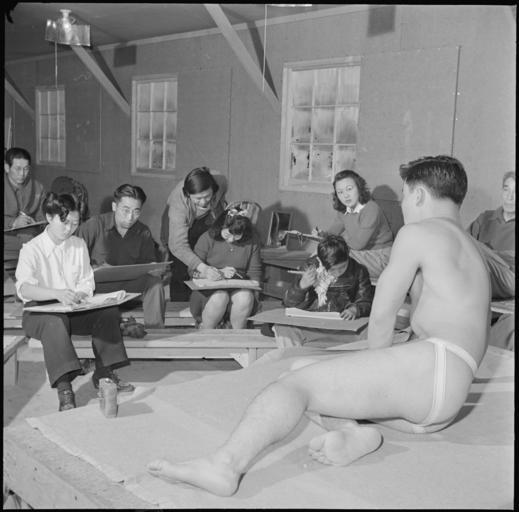 | Keywords: Heart Mountain Relocation Center, Heart Mountain, Wyoming. Benji Okuda instructing a life class, an . . . - NARA - 539164.jpg Scope and content The full caption for this photograph reads Heart Mountain Relocation Center Heart Mountain Wyoming Benji Okuda instructing a life class an adult night school group at the Heart Mountain Relocation Center General notes 539164 Local identifier 210-G-E606 Department of the Interior War Relocation Authority 02/16/1944 - 06/30/1946 NARA-Author Parker Tom Photographer 4682167 <br /> Still Picture Records Section Special Media Archives Services Division NWCS-S National Archives at College Park 8601 Adelphi Road College Park MD 20740-6001 1943-01-11 Record group Record Group 210 Records of the War Relocation Authority 1941 - 1989 Record group ARC 537 Central Photographic File of the War Relocation Authority compiled 1942 - 1945 Series ARC 536000 File unit File unit ARC Variant control numbers NAIL Control Number NWDNS-210-G-E606 Other versions <gallery> File Heart_Mountain_Relocation_Center _Heart_Mountain _Wyoming _Benji_Okuda_instructing_a_life_class _an_ _ _ _-_NARA_-_539164 tif tif File Heart_Mountain_Relocation_Center _Heart_Mountain _Wyoming _Benji_Okuda_instructing_a_life_class _an_ _ _ _-_NARA_-_539164 jpg jpg </gallery> NARA-cooperation PD-USGov Figure modeling Black and white photographs of ateliers Heart Mountain War Relocation Center |