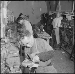 Keywords: Heart Mountain Relocation Center, Heart Mountain, Wyoming. Shoemakers at work in the shoe repair sh . . . - NARA - 539209.jpg Scope and content The full caption for this photograph reads Heart Mountain Relocation Center Heart Mountain Wyoming Shoemakers at work in the shoe repair shop at the center With every available shoemaker at work the flood of shoe repair is so great that completed work is promised in three months The rough countryside and a town without sidewalks and pavement areas makes short work of foot gear General notes 539209 Local identifier 210-G-E652 Department of the Interior War Relocation Authority 02/16/1944 - 06/30/1946 NARA-Author Parker Tom Photographer 4682167 <br /> Still Picture Records Section Special Media Archives Services Division NWCS-S National Archives at College Park 8601 Adelphi Road College Park MD 20740-6001 1943-01-11 Record group Record Group 210 Records of the War Relocation Authority 1941 - 1989 Record group ARC 537 Central Photographic File of the War Relocation Authority compiled 1942 - 1945 Series ARC 536000 File unit File unit ARC Variant control numbers NAIL Control Number NWDNS-210-G-E652 Other versions <gallery> File Heart_Mountain_Relocation_Center _Heart_Mountain _Wyoming _Shoemakers_at_work_in_the_shoe_repair_sh_ _ _ _-_NARA_-_539209 tif tif File Heart_Mountain_Relocation_Center _Heart_Mountain _Wyoming _Shoemakers_at_work_in_the_shoe_repair_sh_ _ _ _-_NARA_-_539209 jpg jpg </gallery> NARA-cooperation PD-USGov Heart Mountain War Relocation Center Shoemakers from the United States |