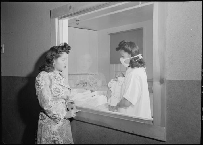 Keywords: Heart Mountain Relocation Center, Heart Mountain, Wyoming. Mrs. Mari Yoshida looks at her baby thro . . . - NARA - 539442.jpg Scope and content The full caption for this photograph reads Heart Mountain Relocation Center Heart Mountain Wyoming Mrs Mari Yoshida looks at her baby through the plate glass window of the nursery as nurses aide Nobuko Hirashima returns it to its crib after feeding General notes 539442 Local identifier 210-G-G189 Department of the Interior War Relocation Authority 02/16/1944 - 06/30/1946 NARA-Author Iwasaki Hikaru 1923- Photographer 8464103 <br /> Still Picture Records Section Special Media Archives Services Division NWCS-S National Archives at College Park 8601 Adelphi Road College Park MD 20740-6001 1943-11-18 Record group Record Group 210 Records of the War Relocation Authority 1941 - 1989 Record group ARC 537 Central Photographic File of the War Relocation Authority compiled 1942 - 1945 Series ARC 536000 File unit File unit ARC Variant control numbers NAIL Control Number NWDNS-210-G-G189 Other versions <gallery> File Heart_Mountain_Relocation_Center _Heart_Mountain _Wyoming _Mrs _Mari_Yoshida_looks_at_her_baby_thro_ _ _ _-_NARA_-_539442 tif tif File Heart_Mountain_Relocation_Center _Heart_Mountain _Wyoming _Mrs _Mari_Yoshida_looks_at_her_baby_thro_ _ _ _-_NARA_-_539442 jpg jpg </gallery> NARA-cooperation PD-USGov Heart Mountain War Relocation Center |