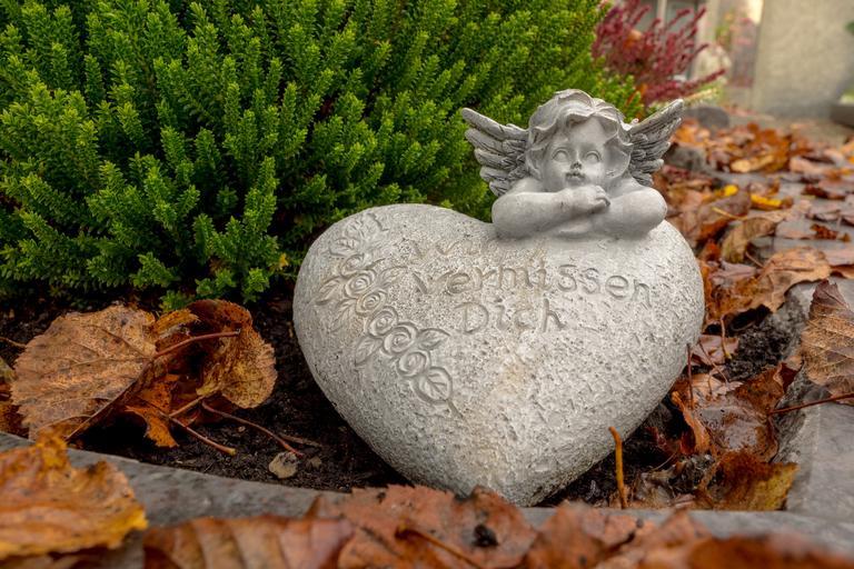 Keywords: heart mourning angel love farewell condolences cemetery statue angel figure memorial death hope sculpture stone prayer transience face silent symbol harmony memory loss grave grabschmuck deco decorative items reflection viewing