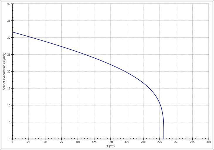 Keywords: Heat of evaporation 3-methylpentane.svg en Heat of evaporation of 3-methylpentane - temperature dependence de Verdampfungswärme von 3-Methylpentan - Temperaturfunktion own Steffen 962 2011-03-05 calculated according/berechnet nach Δ<sub>V</sub>H<sup>0</sup> A·exp ˆ’β·T<sub>r</sub> 1 ˆ’T<sub>r</sub> <sup>β</sup> Δ<sub>V</sub>H<sup>0</sup> in kJ/mol T<sub>r</sub> T/T<sub>c</sub> reduzierte Temperatur mit A 45 24 kJ/mol β 0 2703 und T<sub>c</sub> 504 4 K V Majer V Svoboda Enthalpies of Vaporization of Organic Compounds A Critical Review and Data Compilation Blackwell Scientific Publications Oxford 1985 300 Cc-zero Heat of evaporation |