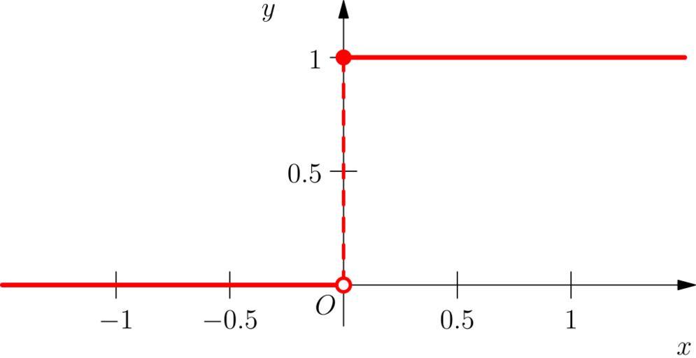 Keywords: Heaviside.svg Verlauf der Heaviside-Funktion auf <math>\R</math> 2007-08-25 own ULennyWikidata Other fields Asymptote + import graph; import settings; outformat pdf ; size 300 300 ; // Function real x1 -1 5 0 ; real y1 0 0 ; real x2 0 1 5 ; real y2 1 1 ; draw graph x1 y1 red+2 ; draw graph x2 y2 red+2 ; draw 0 0 -- 0 1 red+1 5+linetype 4 4 ; fill circle 0 1 0 035 red ; filldraw circle 0 0 0 03 white red+1 5 ; // Axes xaxis Label x Ticks new real -1 -0 5 0 5 1 Arrow ; yaxis Label y Ticks new real 0 5 1 Arrow ymin -0 18 ymax 1 25 ; // Origin labelx O 0 SW ; Heaviside function |