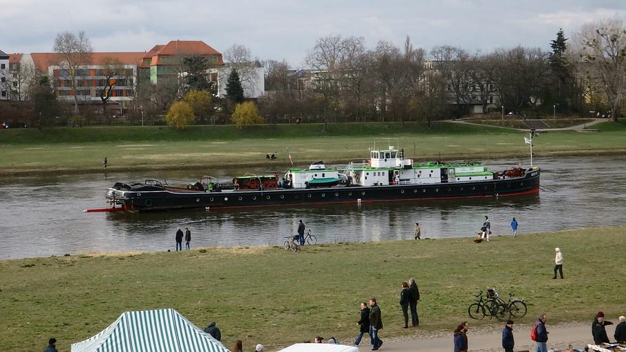 Keywords: Heckradschlepper-Beskydy.JPG de Der letzte tschechische Heckradschlepper Beskydy oberhalb der Albertbrücke in Dresden anlässlich der Bergung des havarierten tschechischen Frachters Albis am 19 März 2016 gemeldet in Praha/Prag;<br> Nationalität Tschechien;<br> Europa-Nr 32103671;<br> Reg -Nr 103671;<br> Länge 57 56 m;<br> Breite 9 40 m;<br> Tiefgang 0 90 m;<br> Tonnage 50 T;<br> Maschinenleistung 405 kW / 550 PS bei 320 Umdrehungen/Minute;<br> Zugkraft 15 T;<br> Maschine Skoda 6-Zylinder Dieselmotor 6L 350;<br> Zylinderdurchmesser 350 mm;<br> Hub 525 mm;<br> Verbrauch pro Stunde bei maximaler Belastung 100 l Dieselkraftstoff;<br> Tankinhalt 25 000 l;<br> Baujahr 1956;<br> Bauwerft České Loděnice Praha závod Mělník Tschechische Schiffswerften Prag Betriebsteil Werk Melnik;<br> Unter Denkmalschutz;<br> Schwesternschiff Jeseniki own Dgarte 2016-03-19 Cc-zero Taken with Olympus SH-2 Steamships of the Czech Republic Elbe in Dresden Water transport on the Elbe |