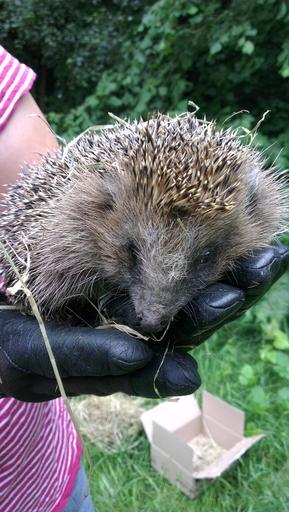 Keywords: hedgehog hand glove close animal prickly lift detention