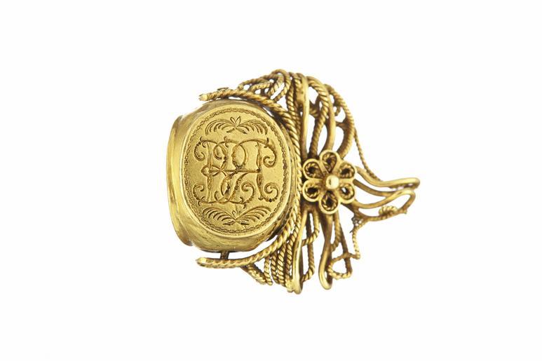 | Keywords: Hedvig Eleonoras signet, 1650-1700 cirka - Livrustkammaren - 97874.tif LSH artwork sv Tresidig vridbar signet av guld ovala sidor på rund kula på sidorna H E R S i olika textning på en sida krönt av kunglig krona på en omgivet av två grupper med korsade palmkvistar på den tredje sidan omgivet av festonger och bladrankor Vridbar i bygel av slät och tvinnad guldtråd mittpå bygeln på vardera sidan en sexbladig blomma i samma teknik <br/>Överlämnad från K Klädkammaren till Kongl Antiquariska och Historiska museum Statens historiska museum i mars 1848 SHM nr 1436 145 a Inlämnad till Klädkammaren 1822 från Ulriksdal Överlämnad till LRK jäml k brev 1932-08-10 original caption Hedvig Eleonoras signet 1650-1700 cirka <br/> Nyckelord Signet 1600-tal ca other date - 1650 1700 gold g 9 size mm 27 14 24 LRK Hedvig Eleonora av Sverige Kungl Klädkammaren Skattkammaren Det Glittrar arb namn prel till 30 aug 2015 2014-2015 Livrustkammaren H E R S krönt Hedvig Eleonora av Sverige H E R S krönt Hedvig Eleonora av Sverige place of origin original filename lm_dig10495 37683 inventory number LRK 1108 97874 CC-BY-SA Erik Lernestål <gallery caption Different images of same object > File Hedvig Eleonoras signet 1650-1700 cirka - Livrustkammaren - 97872 tif File Hedvig Eleonoras signet 1650-1700 cirka - Livrustkammaren - 97873 tif </gallery> Signets Erik Lernestål Media contributed by LSH unmatched keyword Media contributed by LSH 2014-11 wikipedia sv Hedvig Eleonora av Holstein-Gottorp |