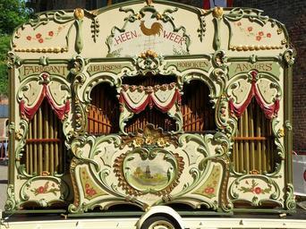 | Keywords: Heen en weer draaiorgel.JPG nl Draaiorgel Heen en Weer gefotografeerd in Fort VIII te Hoboken in 2010 <br/> Een informatiebord bij het orgel gaf de volgende uitleg <br/> De Heen en Weer werd in 1909 gebouwd door de Antwerpse orgelbouwer J Burssens en is daarmee het oudste bekende orgel van dit fabricaat Origineel werd het als dansorgel gebruikt Reeds kort na de eerste wereldoorlog werd het orgel naar Holland overgebracht en verbouwd tot een compacter straatorgel Dit was het lot van vele Belgische dansorgels Het instrument zelf bleef echter wel in zijn oorspronkelijk volume bewaard en het grootste deel van het front dat men nu ziet is nog steeds het originele Enkel de kap bovenop het orgel werd in die jaren bijgemaakt ¦ Toen het orgel voor het eeuwfeest 100 jaar Orgelbouw Bursens in oktober 2008 opdook greep Alberic Godderis uit De Panne de kans om het historisch instrument in zijn atelier te halen Het instrument werd terug speelklaar gemaakt daar het orgel na dat eeuwfeest de geest had gegeven Mechanisch is het instrument er weer helemaal bovenop Later volgden nog enkele aanpassingen om het instrument muzikaal weer helemaal te optimaliseren ¦ <br/> fr Orgue de Barbarie Heen en Weer Va-et-Vient photographié au Fort VIII de Hoboken en mai 2010 <br/> Un panneau d'information près de l'instrument nous fournissait les renseignements suivants <br/> Le Heen en Weer le Va-et-vient a été construit en 1909 par le facteur d'orgues Joseph Bursens à Anvers Belgique C'est l'orgue le plus ancien connu de cette marque à l'origine c'était un orgue de danse doté d'une imposante façade ¦ Peu après la Première Guerre mondiale l'orgue a été transporté aux Pays-Bas et transformé en orgue de Barbarie C'était là le destin de nombreux orgues de danse à cette époque L'instrument lui-même a été préservé dans son volume original et la plus grande partie de la façade qu'on peut voir encore aujourd'hui est d'origine ; seul le panneau supérieur a été ajouté ¦ Lors de la commémoration pour les 100 ans d'existence de la firme Bursens en octobre 2008 Alberic Godderis a découvert cet instrument et a décidé de le restaurer dans son atelier Tout était à refaire Aujourd'hui mécaniquement l'orgue a été complètement restauré et il ne reste que quelques petits ajustements à apporter pour optimaliser les propriétés musicales en Draaiorgel Heen en Weer Back and Forth photographed in Fort VIII to Hoboken in 2010 <br/> An information board at the organ gave the following explanation <br/> The Heen en Weer the Back and Forth was built in 1909 by the organ builder J Burssens in Antwerp Belgium and it is the oldest known organ of this brand Originally it was used as a dance organ Shortly after the First World War the organ was moved to the Netherlands and converted into a compact street organ barrel organ This was the fate of many Belgian dance organs at that time However this instrument itself has been well preserved in its original volume and the major part of the front that it is now sees is still the original Only the cap on top of the organ was created as in those years When the organ for the centennial celebration 100 jaar Orgelbouw Bursens 100 years of organ builder Bursens in October 2008 Alberic Godderis from De Panne the chance to discoverd this instrument and decided to get this historical instrument in his workshop The instrument was made back ready to play it had given Organ after the centennial spirit Mechanically the instrument is back on his feet Later followed some adjustments to optimize the instrument musically again completely 2010-05-23 16 39 06 own Torsade de Pointes cc-zero Uploaded with UploadWizard Barrel organs Street organs J Burssens organ builder 1909 instrument productions Dance organs Draaiorgel straatorgel |