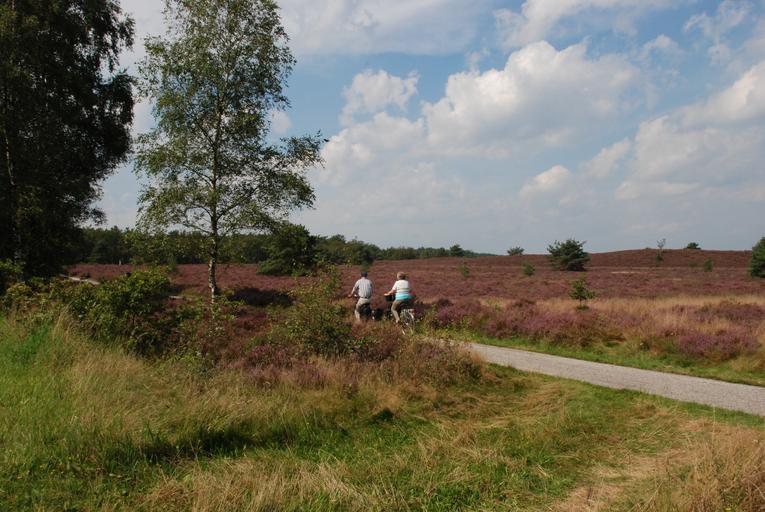Keywords: heide bloom veluwe path bicycle bike path road landscape nature tree netherlands