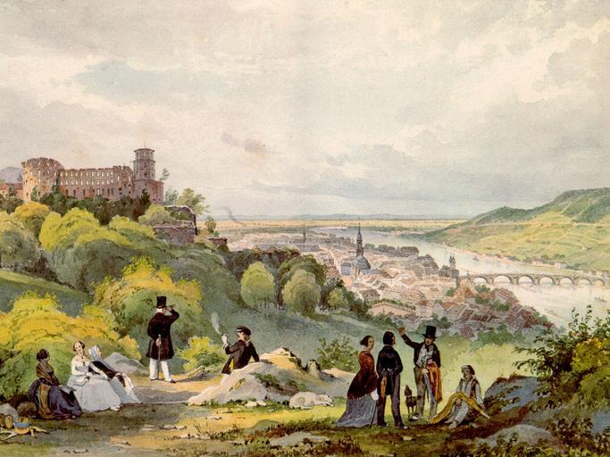 Keywords: Heidelberger Schloss Alte Bruecke von Louis Hoffmeister ca 1820.jpg historic views of Heidelberg Germany PD-old 19th-century Heidelberg 1820 Hortus Palatinus Louis Hoffmeister