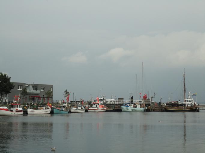 Keywords: heiligenhafen baltic sea northern germany port sailing ships sea clouds water mood fishing boats