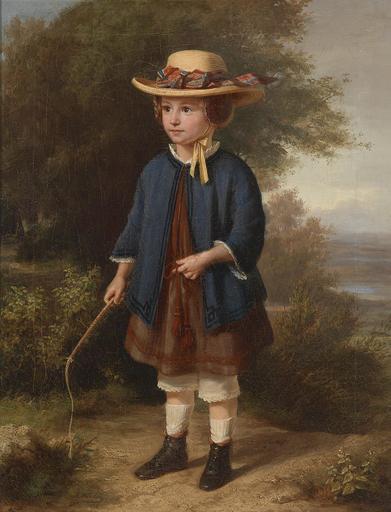 Keywords: Heinrich Bohn Kind in blauem Umhang mit Rute 1852.jpg Kind in blauem Umhang mit Rute in einer Landschaft stehend signiert undeutlich bezeichnet und datiert H Bohn Octbr 1852 Öl auf Leinwand 37 x 48 cm http //www dorotheum com Dorotheum 1852 Heinrich Bohn fl Academic exhibition Berlin 1856-1883 PD-old-100 Images from Dorotheum Straw hats in art Bohn Portrait paintings of children 1852 paintings |